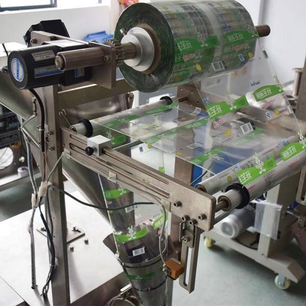 The integrated processes of bag making, measuring filling, sealing cutting, counting and hot pressing codes can be done automatically. Packing material include several kinds of heat seal lamination, such as PET/plated AL/PE, PET/PE, PAPER/PE,NYLON etc.